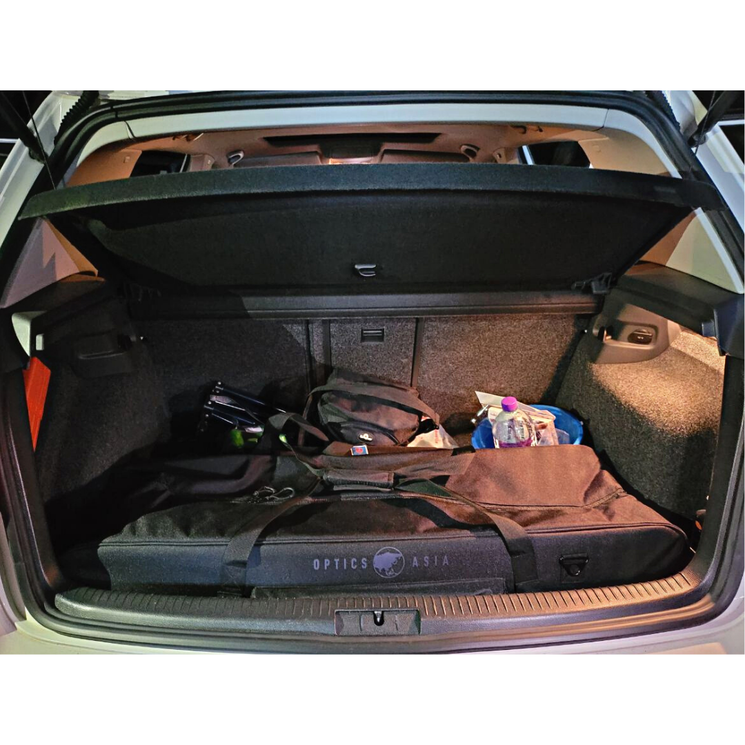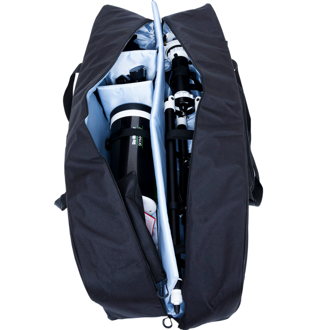 本天体望遠鏡ケースは、90ミリ, 4インチ, 5インチシュミットカセグレンや、114mm, 130mmニュートン式、長さ100cm以下の屈折式望遠鏡と三脚との組み合わせ、又は経緯台や赤道儀などの一緒に収納して、安全に楽に持ち運ぶことを想定してデザインになっています。
